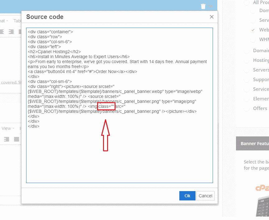> Edit the Page and then edit the banner section, click on view source and add class="" after image tag