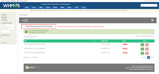 By default ClientX shows announcements on the home page, you can disable them anytime you want to.