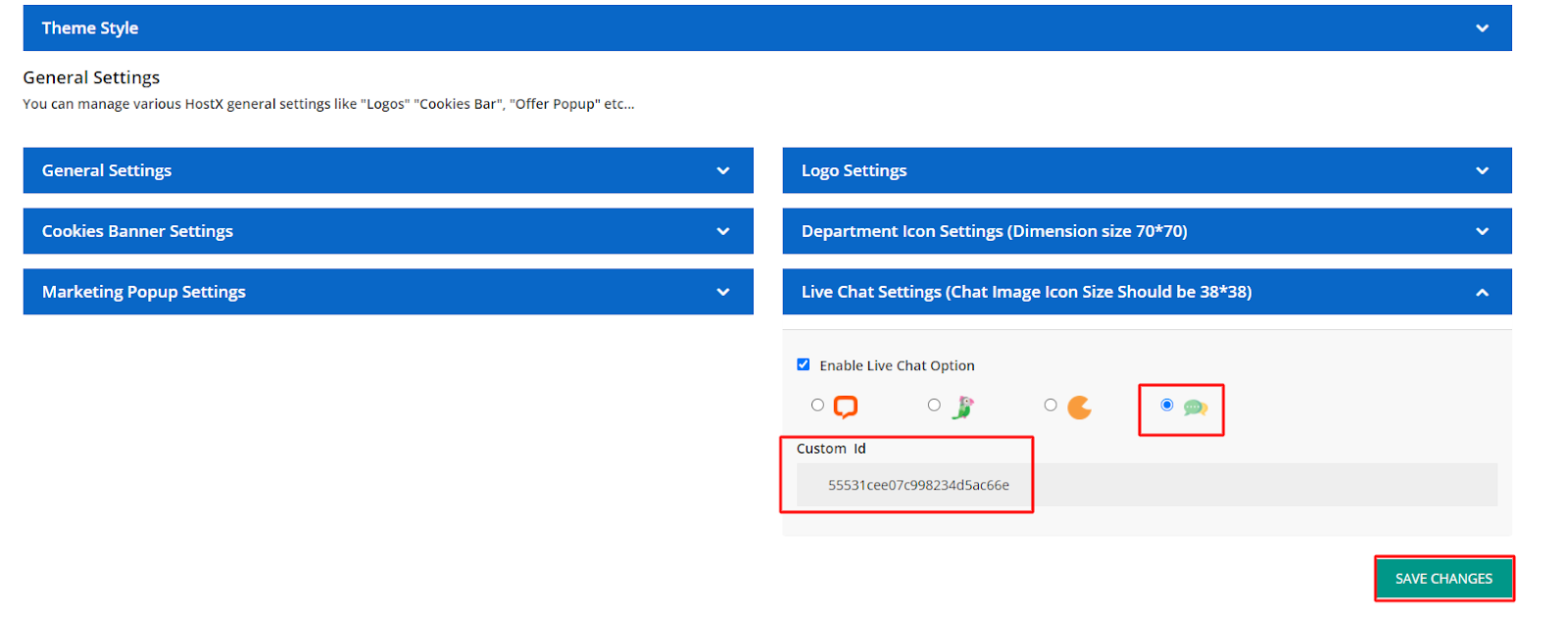 You can change the Live Chat Settings as well by clicking on Live Chat Settings (Chat Image Icon Size Should be 38*38) button.