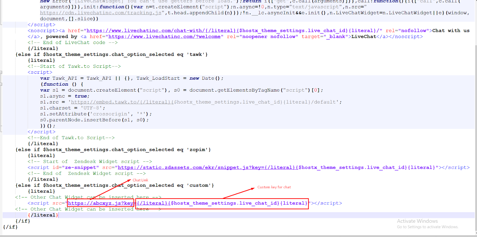 Here add your Custom ID link and Custom Key for Chat in Chat Script