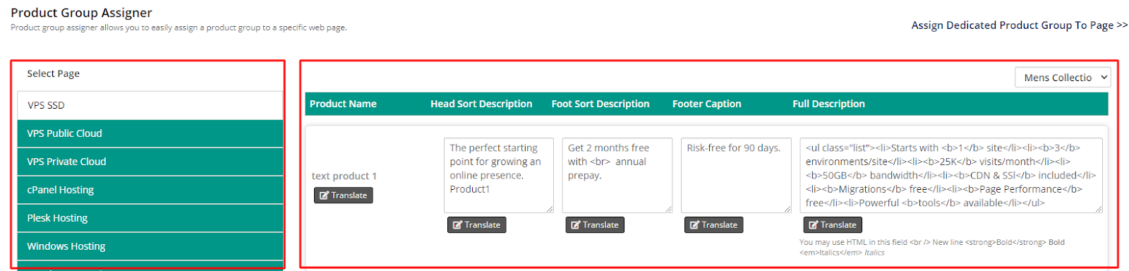 On the left-side, on-screen you will have a list of all types of product pages and on the right side, you will get all the products related to the assigned product group.