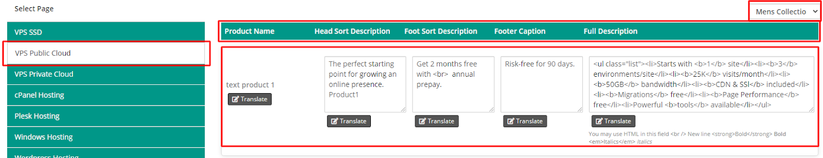Note: You can directly translate the product information into other languages just by hitting the Translate button at the bottom of each section.