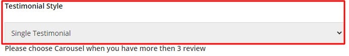 Carousel: Choose this option if you want to display multiple testimonials at once in the website. Keep in mind that this option will work only if you will have more than three reviews to show.