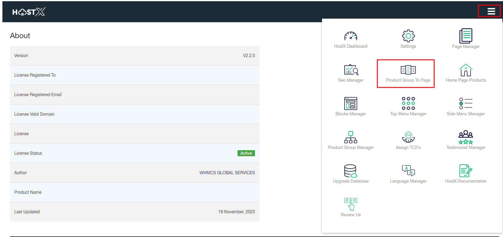 Step 2: Go to Addons > WGS HostX >Product Group to page