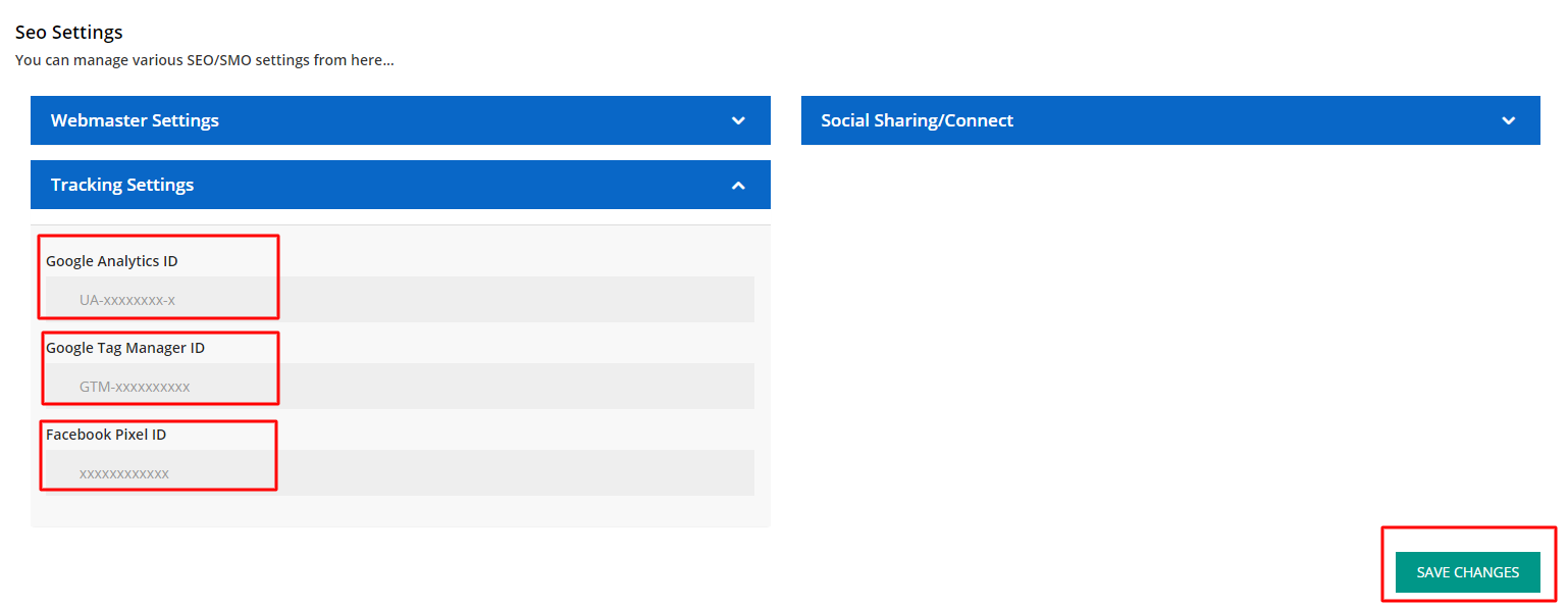 - Google Verification Code: Enter your Google Verification Code in this section. For example: UA-xxxxxxxx-x