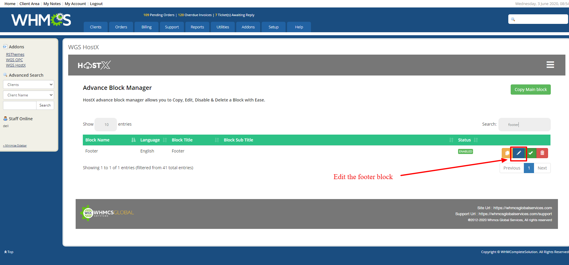 Some of our HostX users face this issue that links on footer gets append especially on the knowledgebase and announcement pages and causes issues in website SEO. To fix this issue please follow this procedure:
