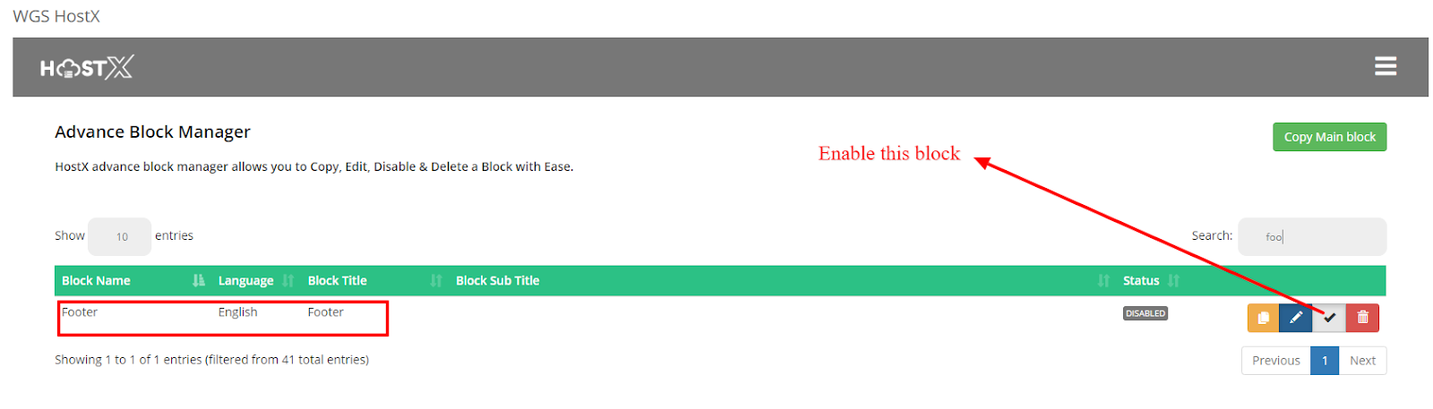 Step 2: Go to Addons > WGS HostX > Blocks Manager