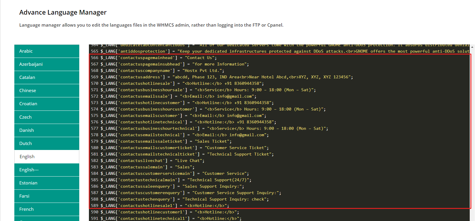 Step 4: Open English.php language and find out the lang variable.