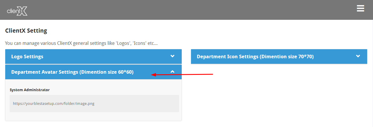 You can easily update the avatar for your support department by entering the URL of your brand logo here.