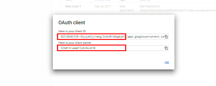 A pop up appears that has both Client ID & Secretkey. Copy both data in plain file.