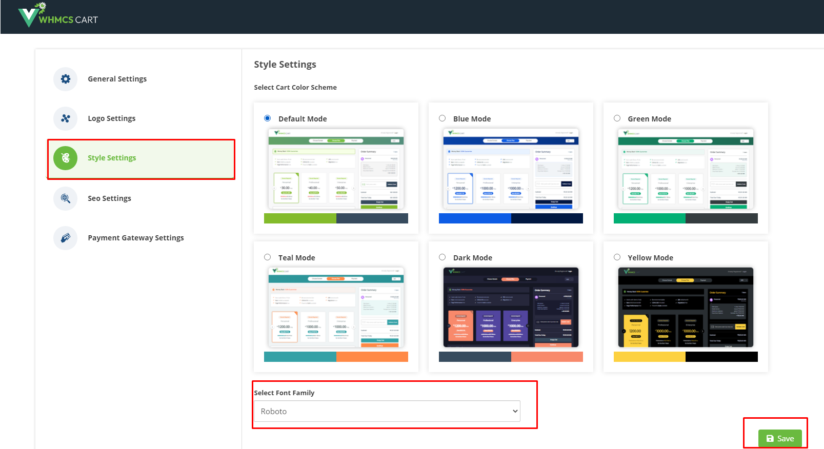 Step 3: Click on setting then go to the Style setting and change the font style as per your choice and click on the Save button