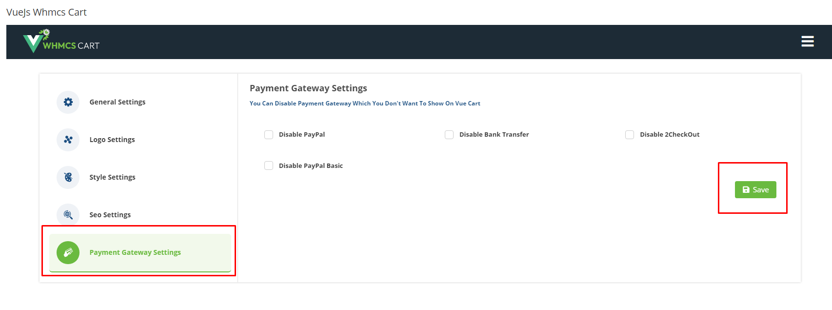 Step 3: Click on setting then go to the Payment Gateway setting from where you can change the payment Gateway Setting and click on the Save button