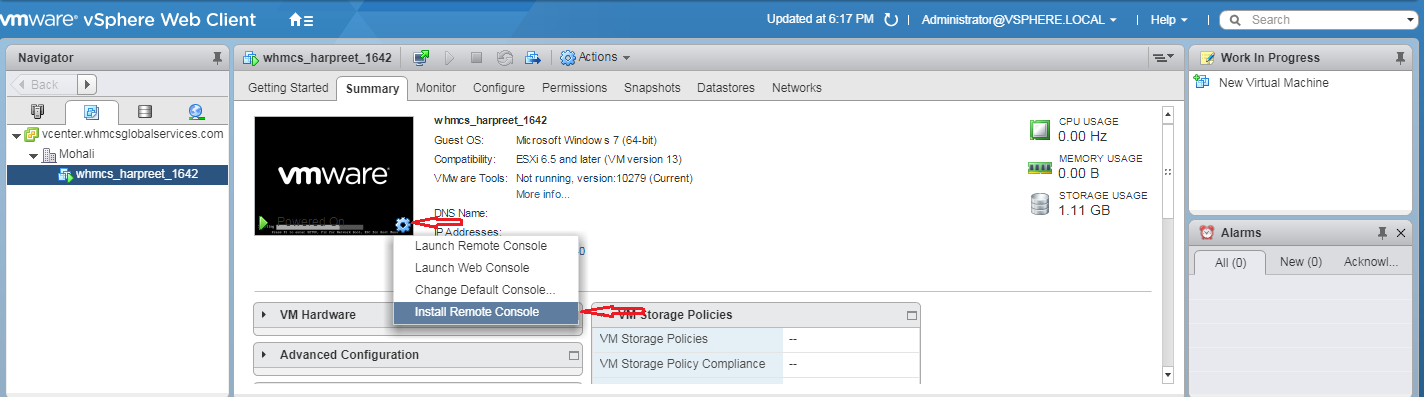 Login in your vCenter panel, click on any created VM and then click on selected VM setting icon and get the console options. In console options list you can find the "Install Remote Console" link.