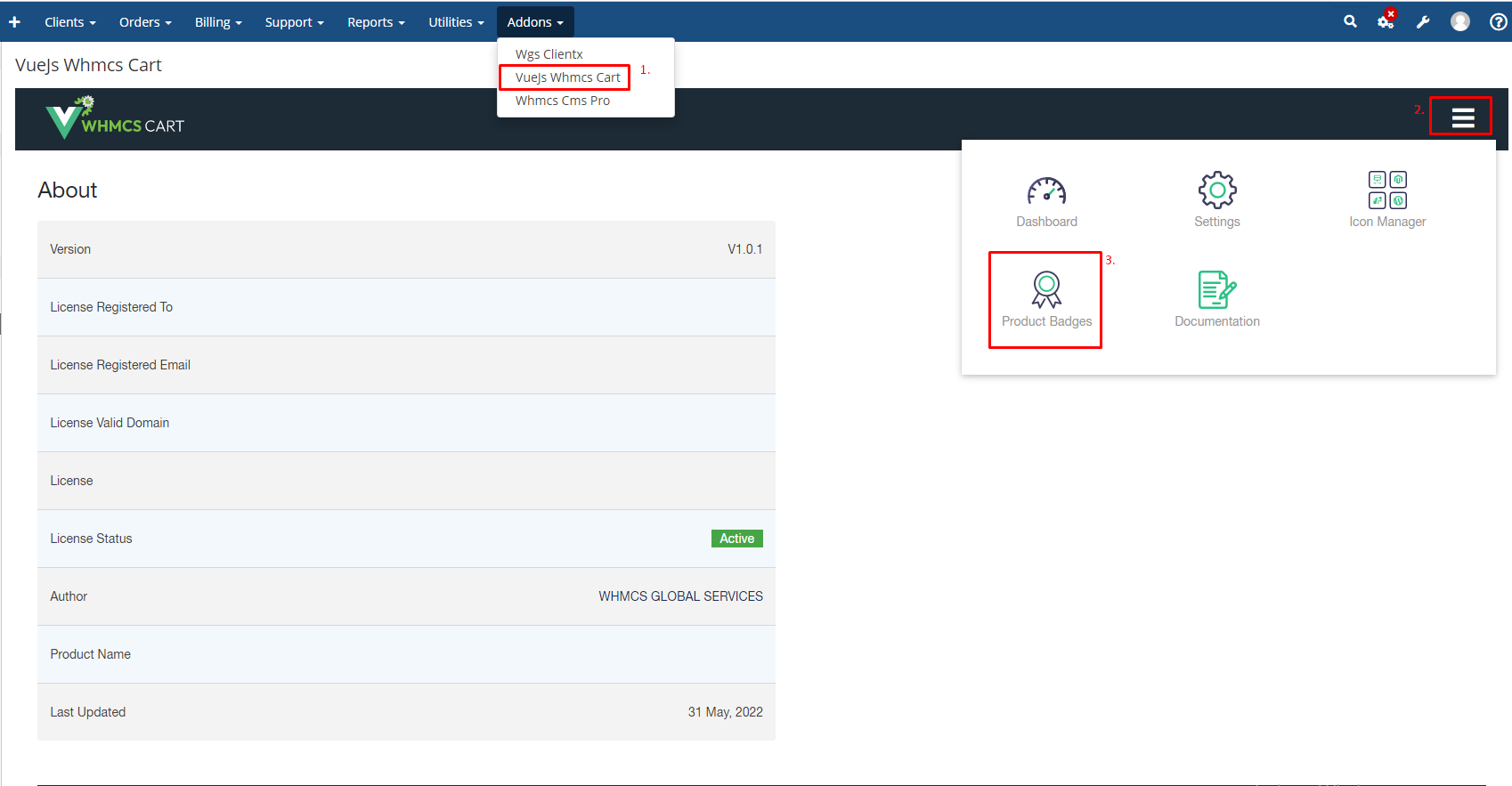 Step 2: Go to Add-ons > Vue Js Whmcs Cart >Product Badges