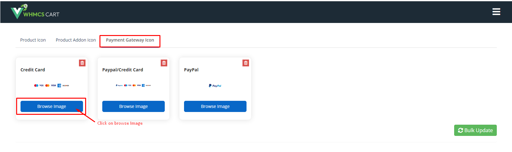 Step 4: Click on Browse Image and Select any payment gateway you want from the Payment Gateway Icon, then click Browse and select the image you want.