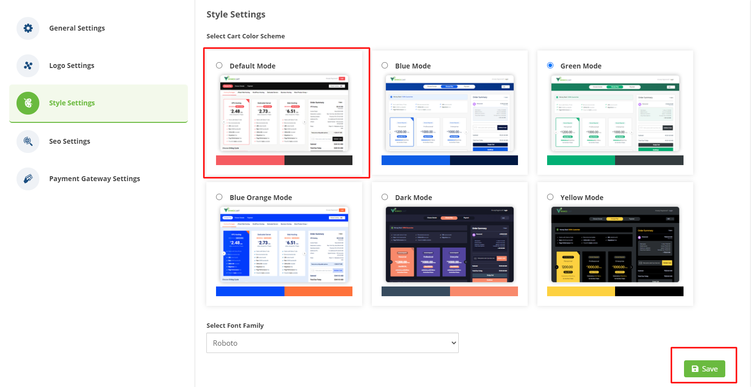 Step 3: Click on setting then go to the Style setting and change the colour style as per your choice and click on the Save button.