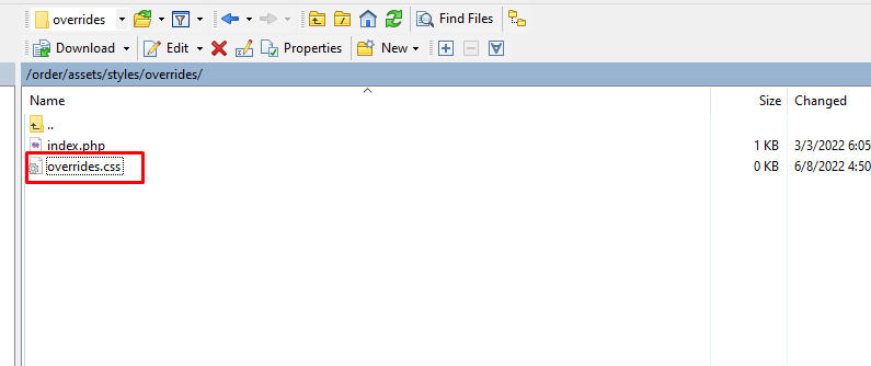 Step 4: Open FTP and go on this path "/order/assets/styles/overrides/" [Order folder should be your vue cart folder]