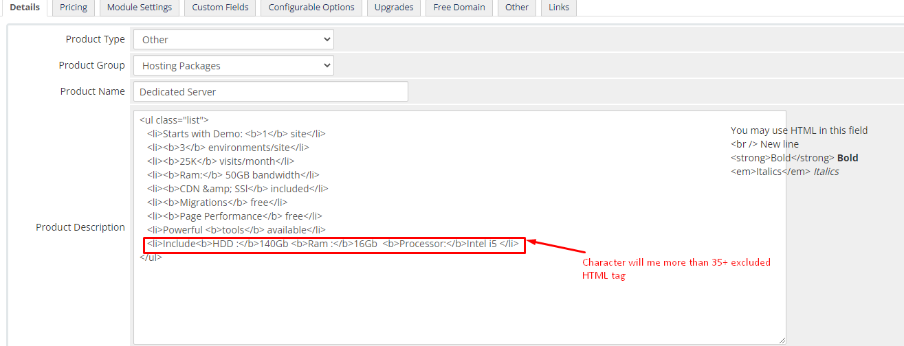 Step 3: By opening Products/Services you will see the product group click on the Dedicated Server and edit button