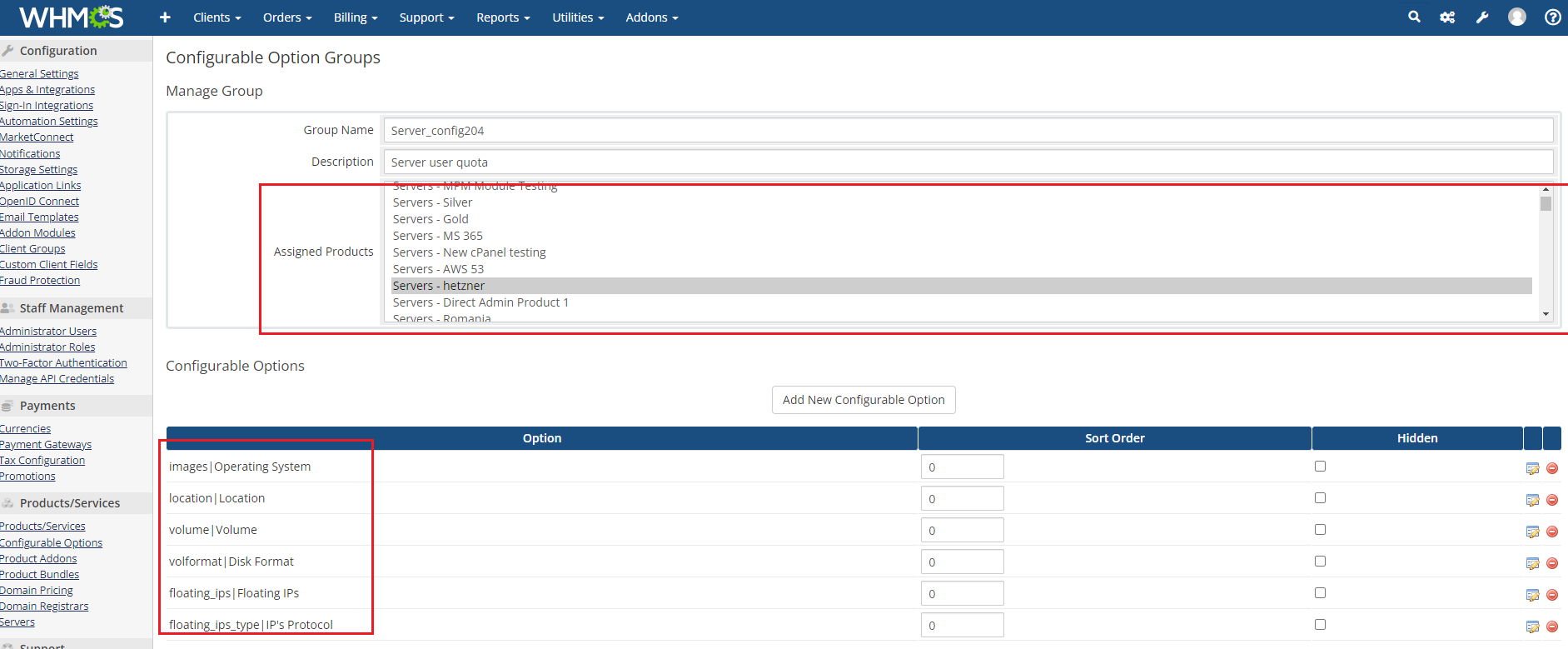 By default when you assign the "Hetzner Cloud Provisioning Module" with product under Module Settings tab that time module auto create a product configurable group with that product. Configurable group name will be like "Server_config + Product ID". Module create that group in background. So, when you configure the module and click on save changes then setting overrides.