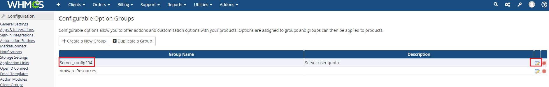 If there is not configurable group created then you can create new one with same name Server_config + Product ID.