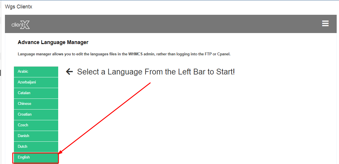Step 2: Go to Addons > WGS ClientX > Language Manager