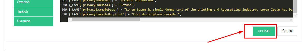 Step 5: Once you have done your required changes you need to click on the update button below.