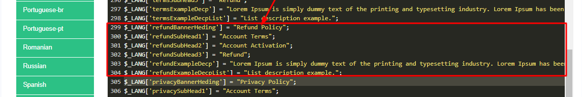 Step 4: After selecting the language you will see a screen similar to screenshot below and then you can change the text written inside the double quotes as per your choice.