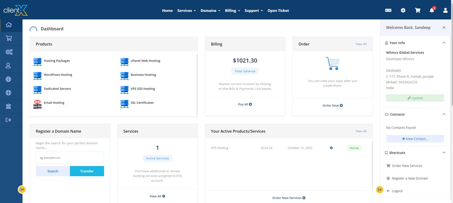 Step 6: By clicking on WHMCS Default it will look in the frontend as shown below