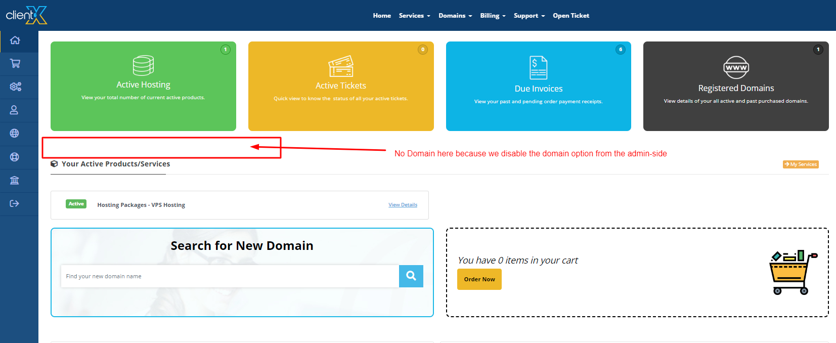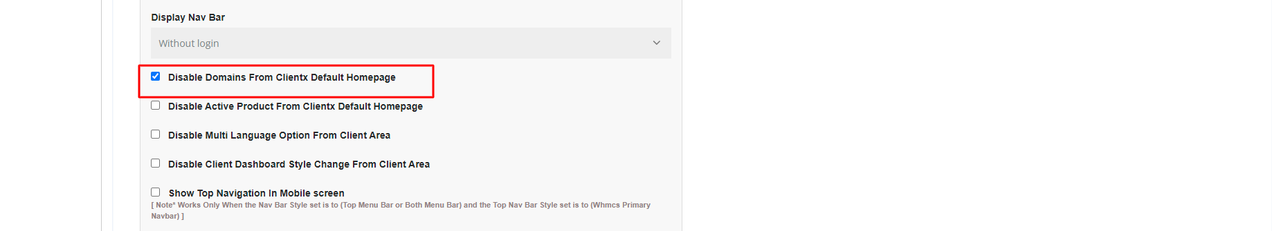 How to Disable Domains From Clientx Default Homepage?