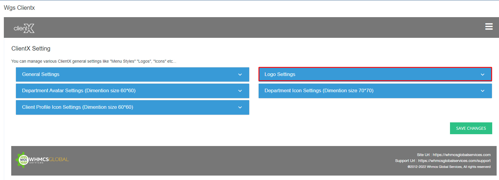 Step 4: In order to change the design of your webpage logo, click on the Logo Settings dropdown menu.