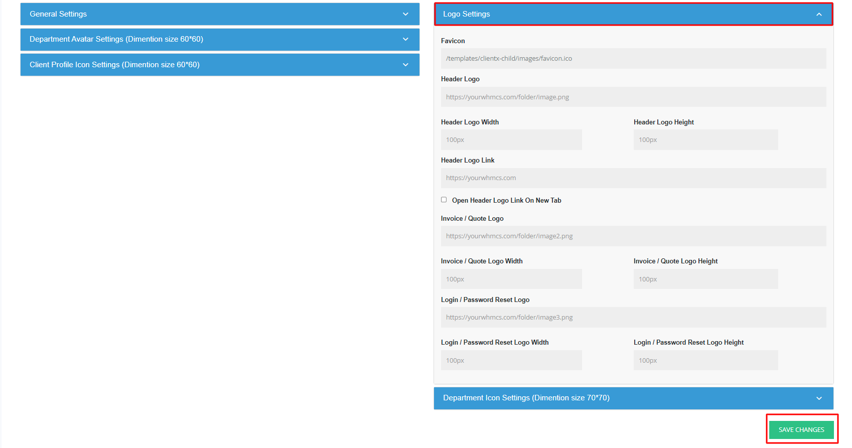 6. Invoice / Quote Logo: In case if you want to change the client area invoice logo or quote, then enter the logo path here.