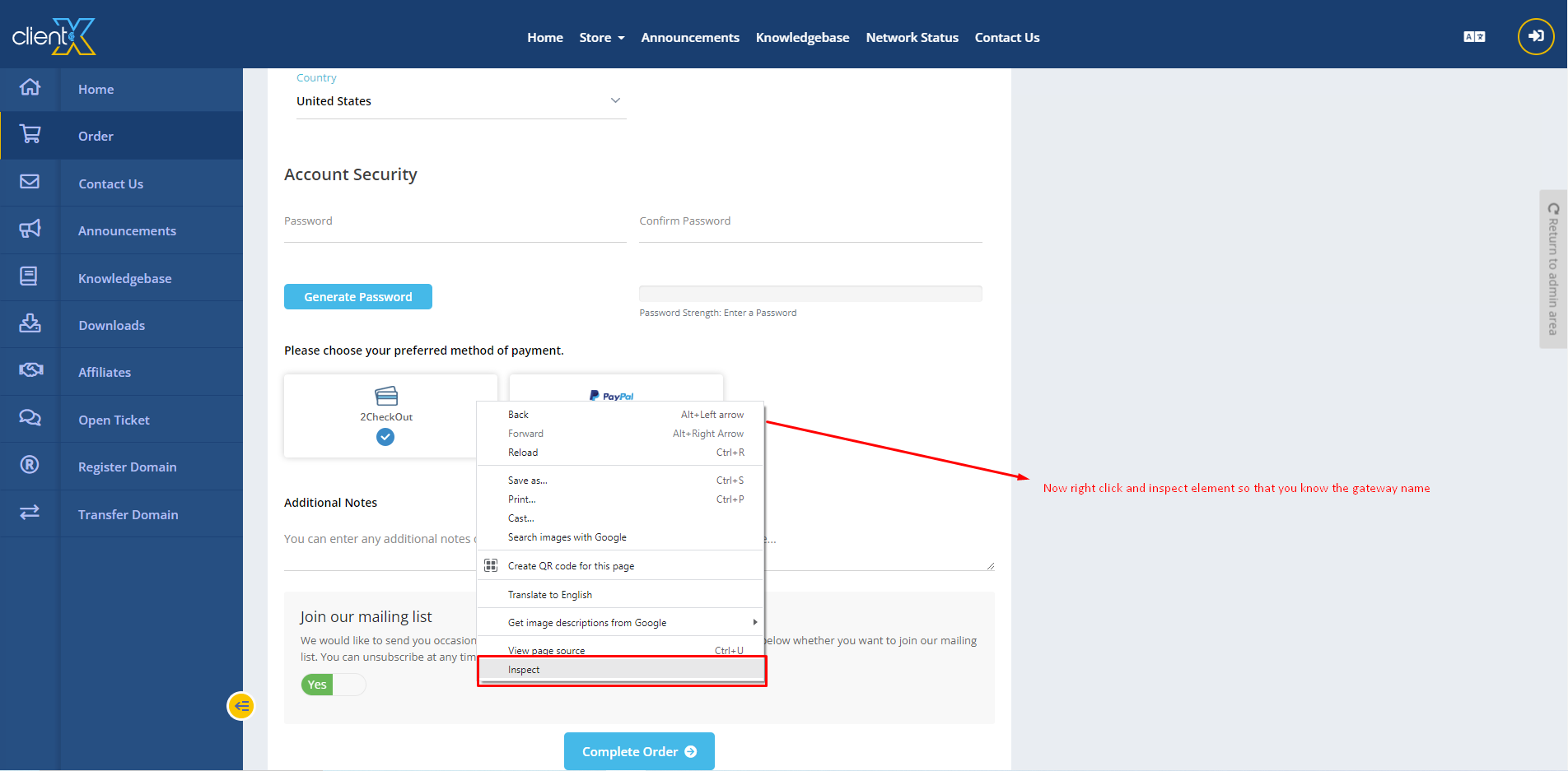 Step 1: Go to the checkout page or the last page by ordering any product so that you can see the gateway name