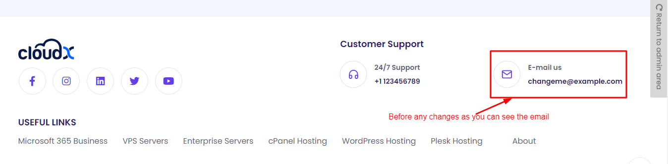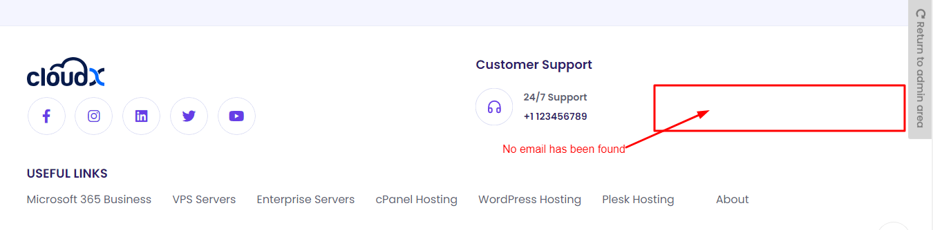 Step 4: After Disable the Email from the Footer it will be shown in the frontend like this.