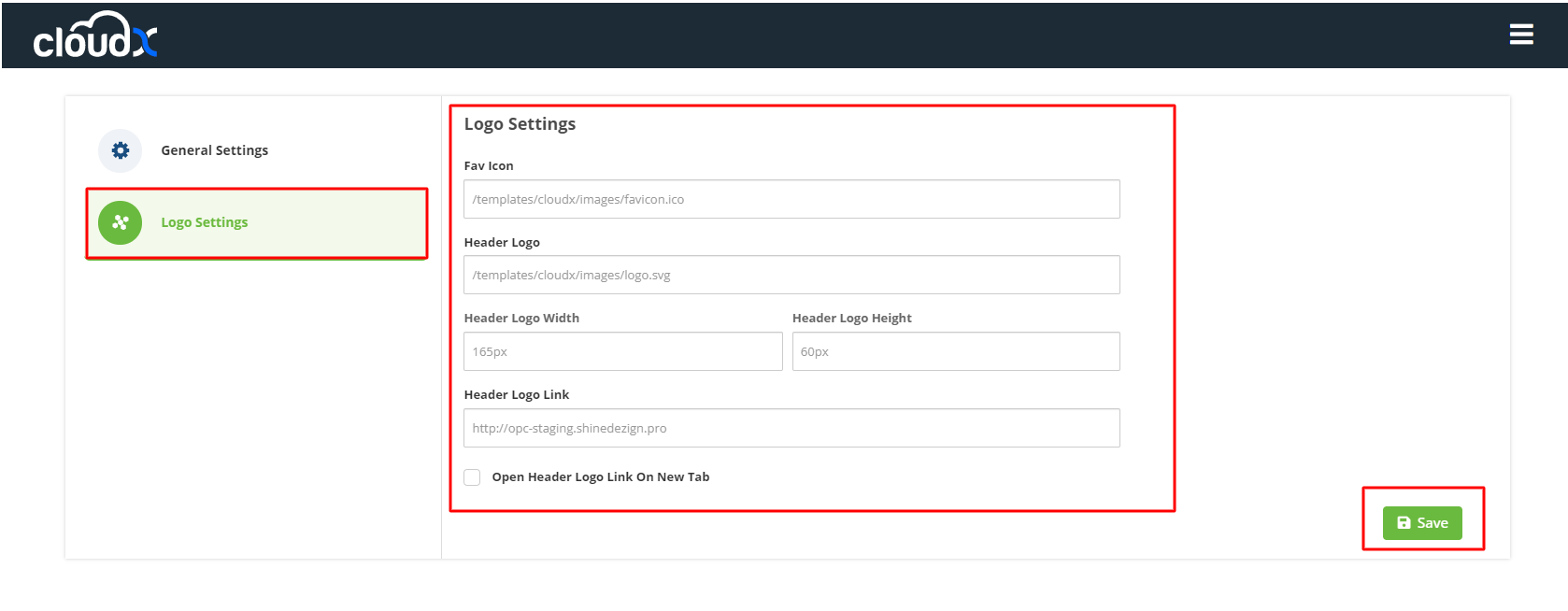 Step 3: After clicking on the setting button you will see the Logo Settings as shown in the screenshot from where you can change the logo settings and then click on the save button