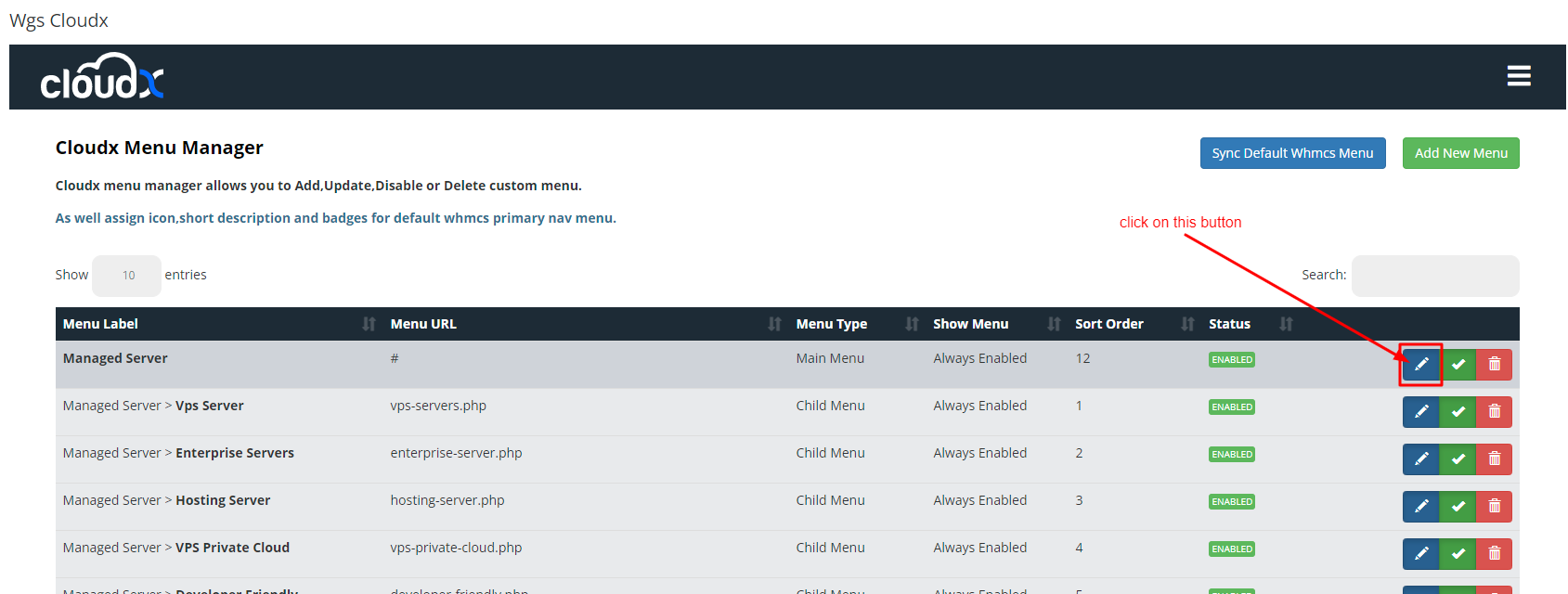 Step 1: Log in to WHMCS Admin and click on Cloudx Addon