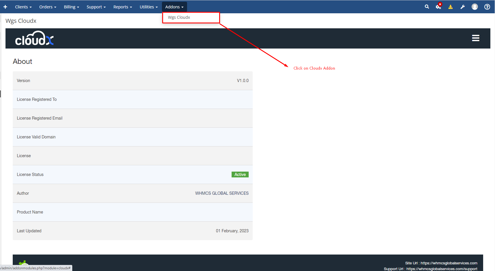 Step 1: Log in to WHMCS Admin and click on Cloudx Addon