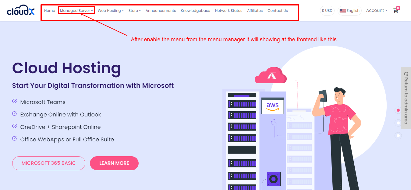 Step 4: After enable the menu from the menu manager it will look like at the frontent side like this.