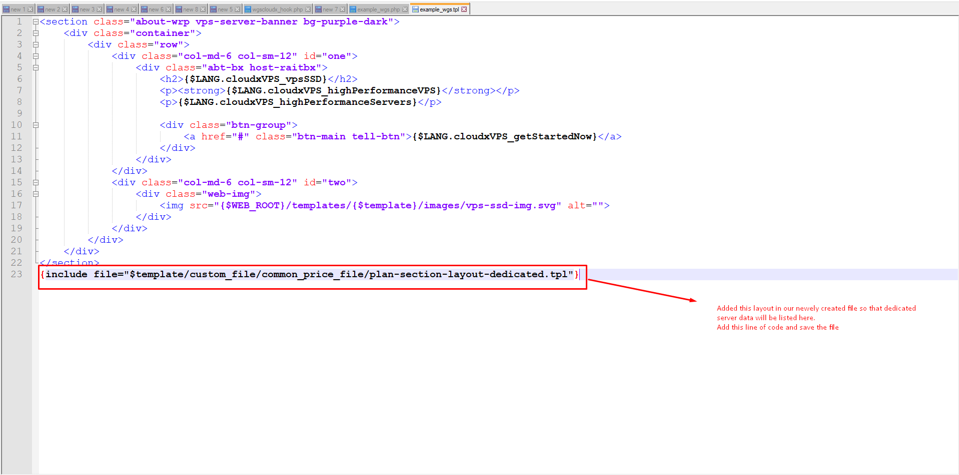 Step 4: Now edit the file which you want to use the dynamic pricing layout in our case we are adding the layout in newly create file example_wgs.tpl.