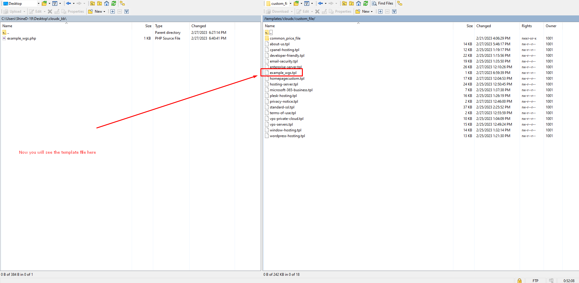 Note: Now you have to add html section and all in example_wgs.tpl file which is placed at the following path "/templates/cloudx/custom_file/"