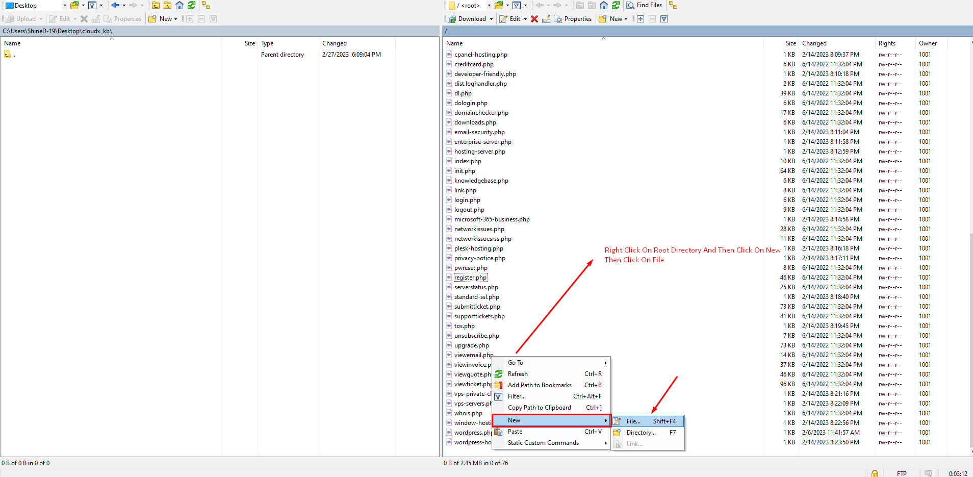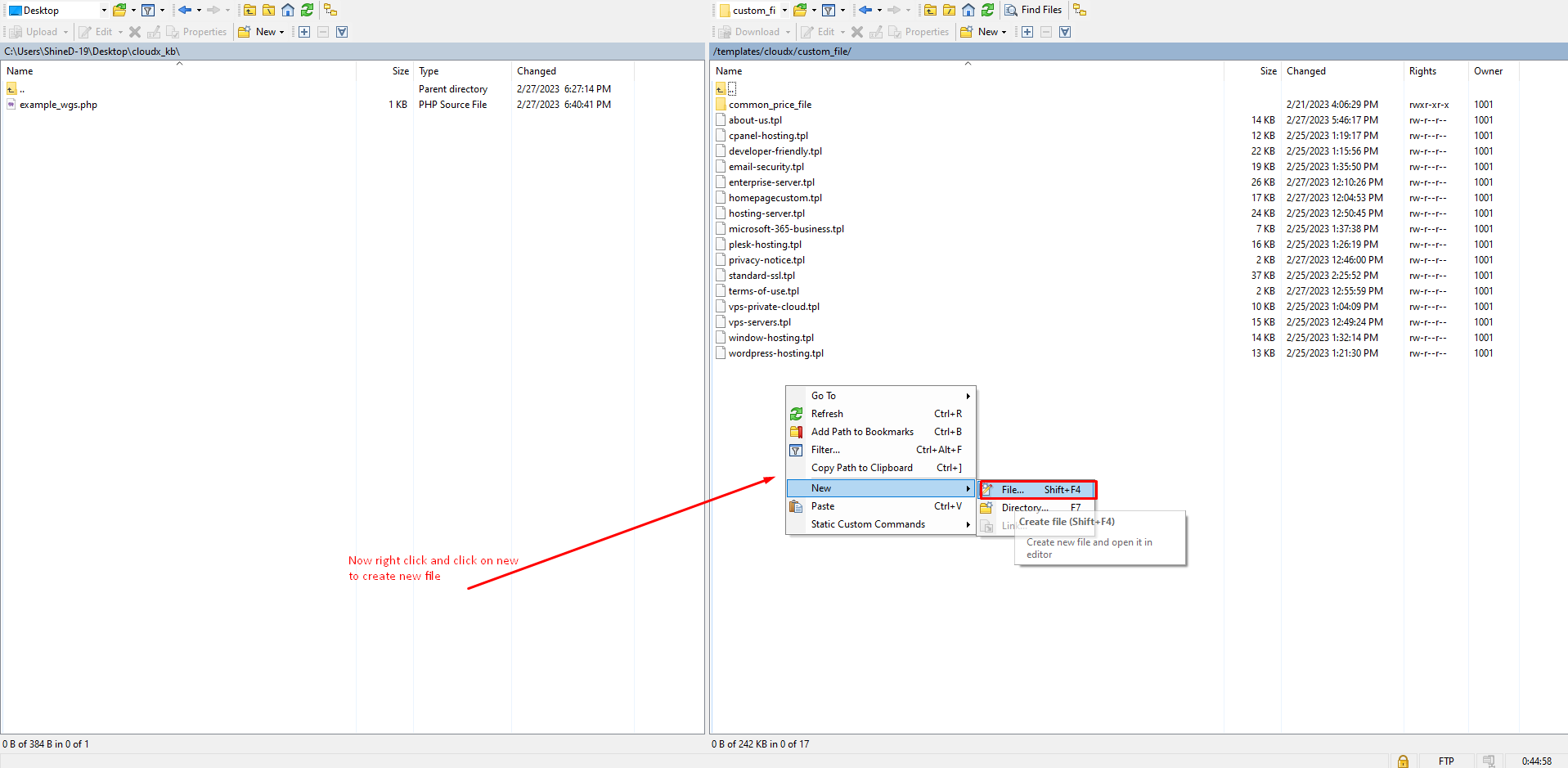 Step 10: Now click on right side and then click on new option to create a new file as shown in the screenshot below.