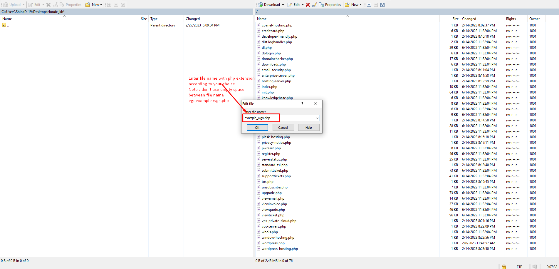 Step 3: Now Create the Php File with the name you want ie. example_wgs.php as shown in the screenshots below.