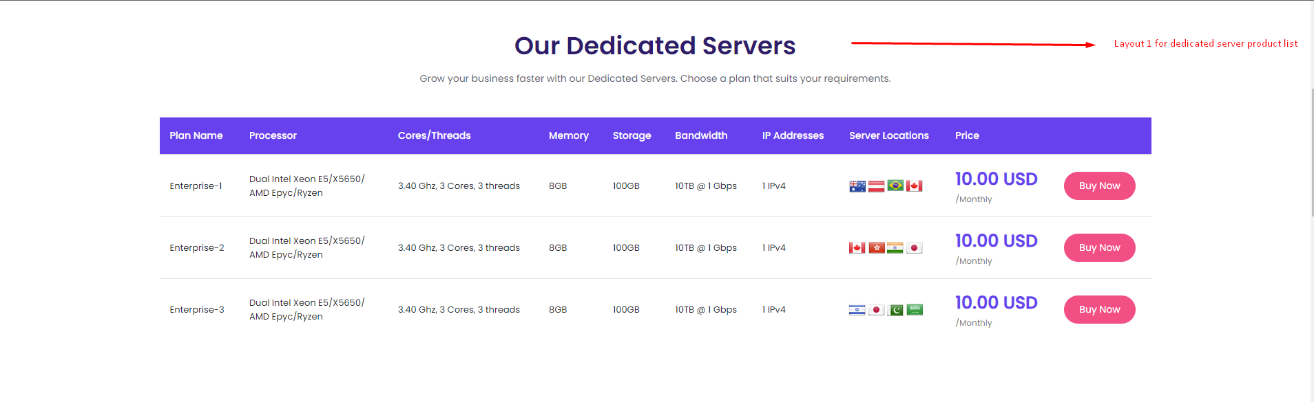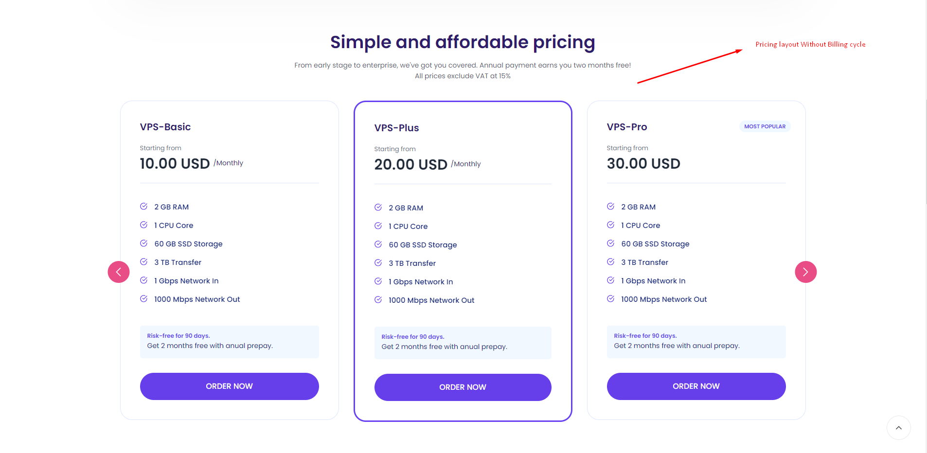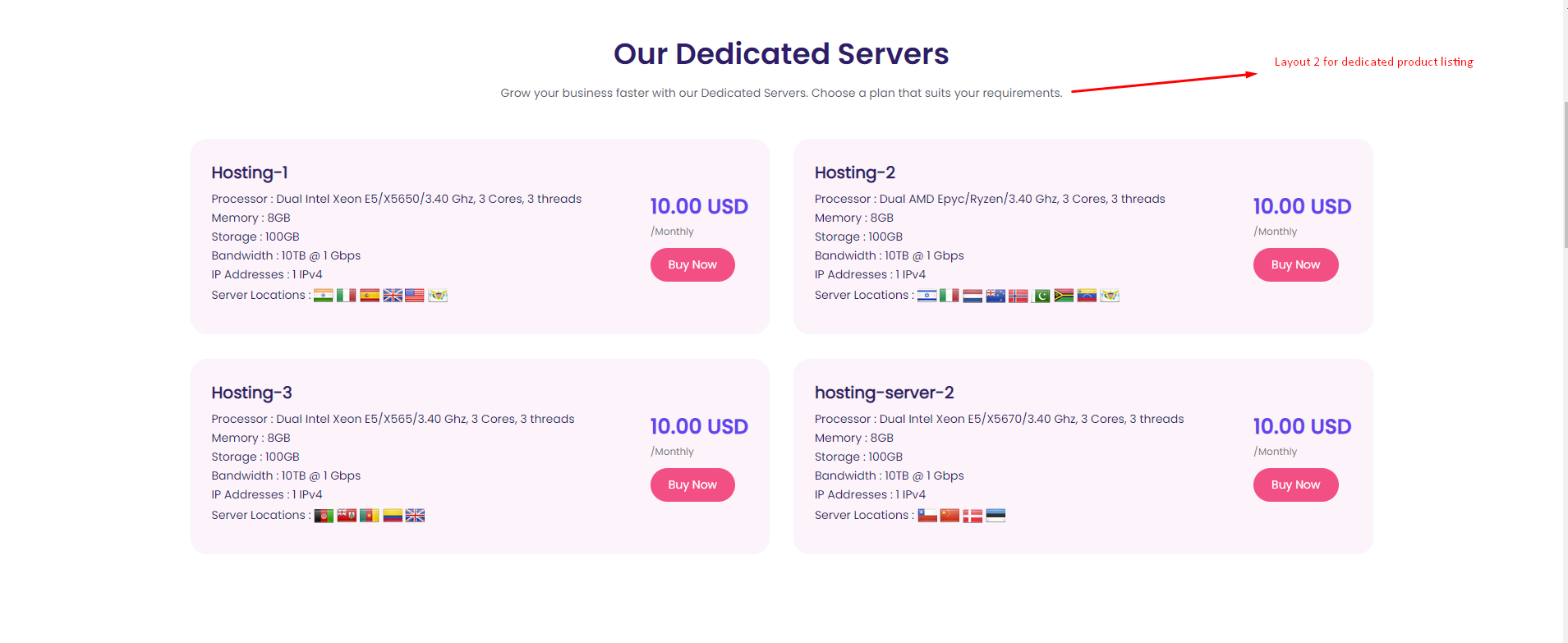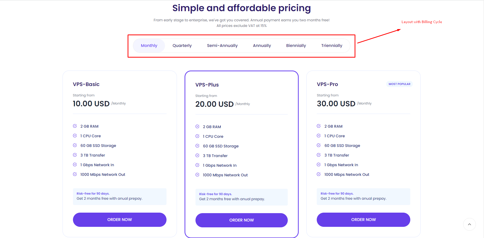 Step 1: We have 4 total layout of pricing section which will list your WHMCS product assigned from Cloudx addon.