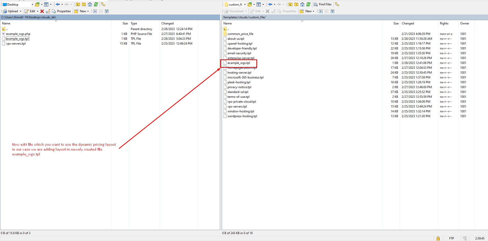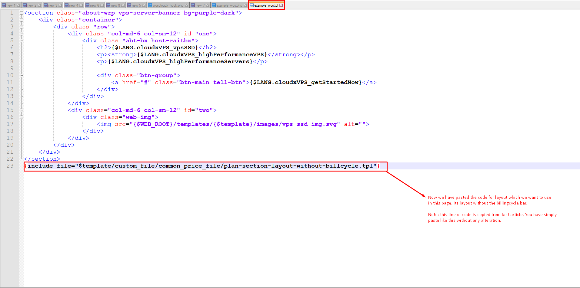 Step 1: Now you can edit the file which you want to use for the dynamic layout. In the below screenshot we are adding the layout in newly created file example_wgs.tpl