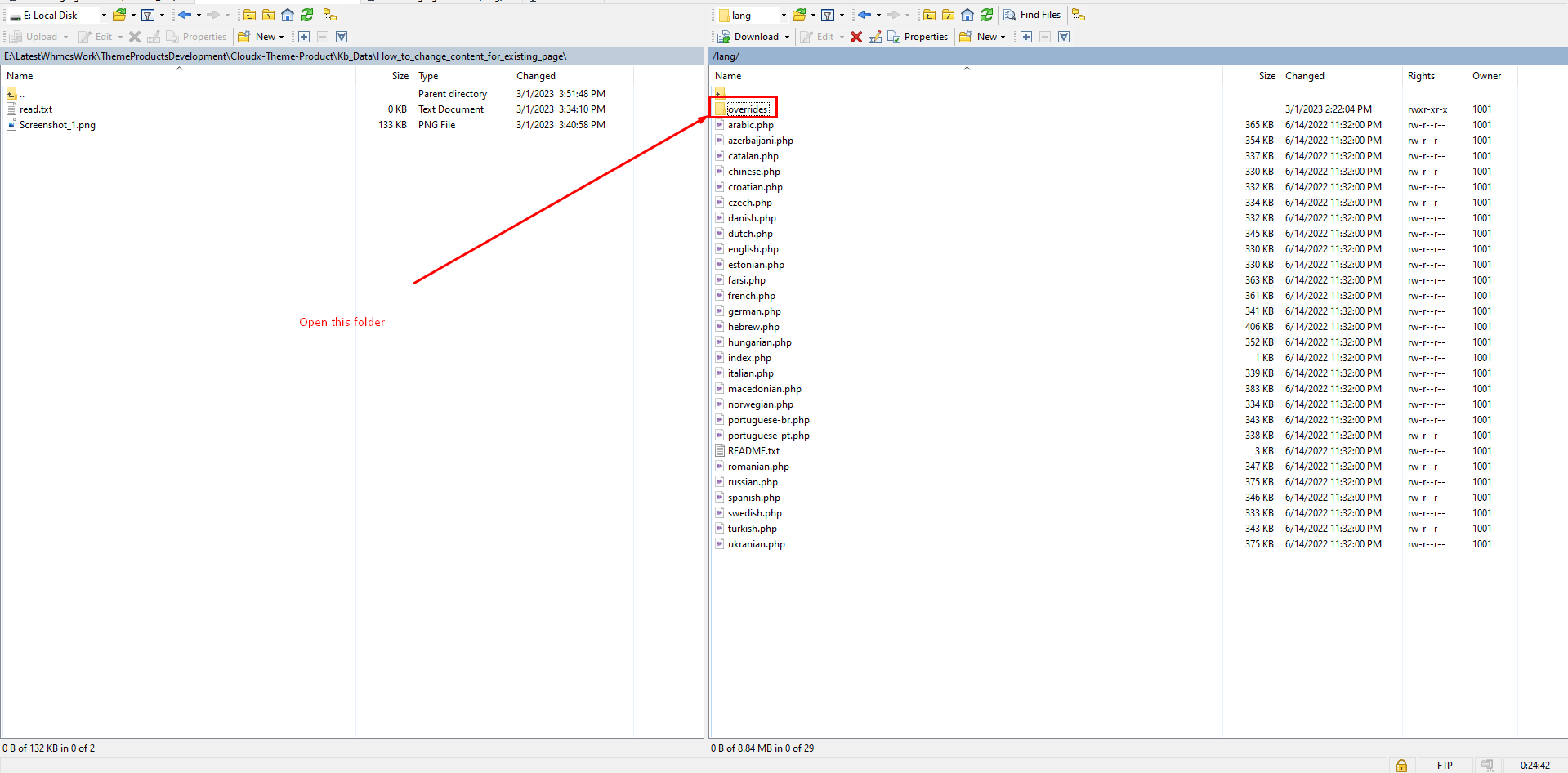 Step 3: Once you are inside /lang/ path in the cpanel/FTP then click on overrides folder to open it.