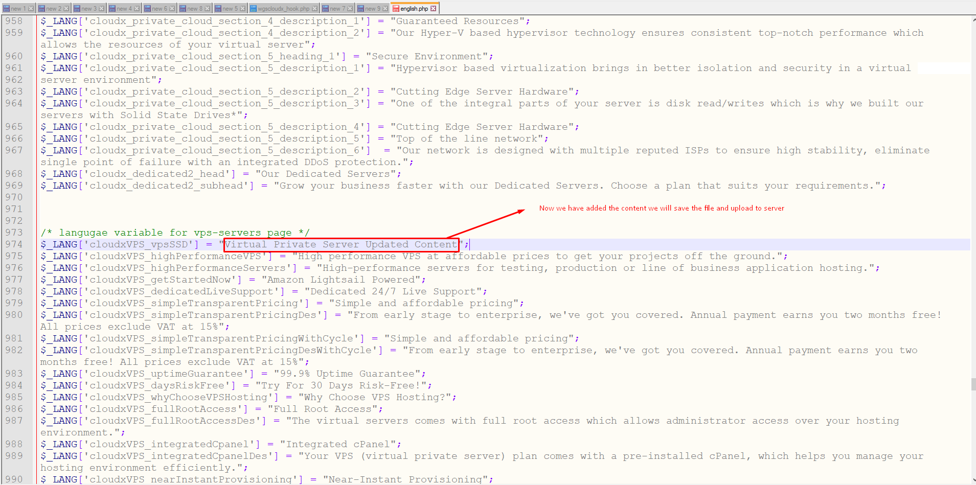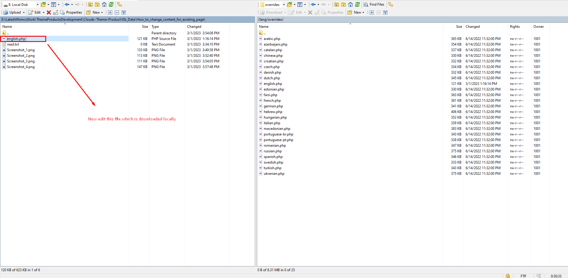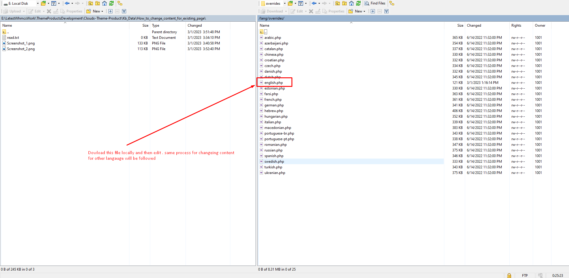 Step 6: Once you have downloaded the english.php file, you can edit it locally.