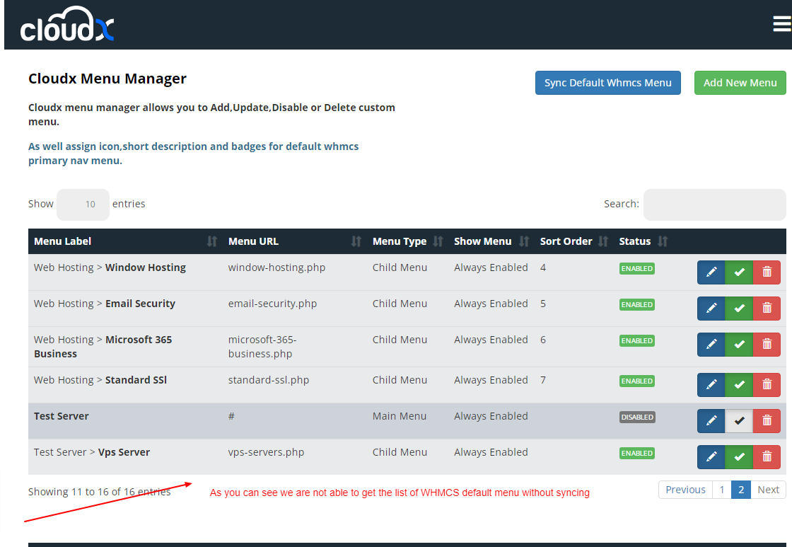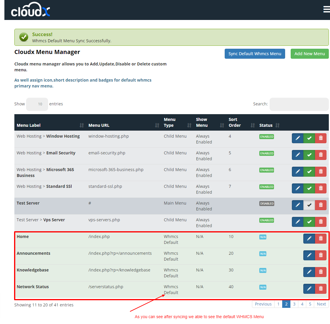 Step 4: After syncing the Default WHMCS menu you see the Default WHMCS menu in the below screenshot.