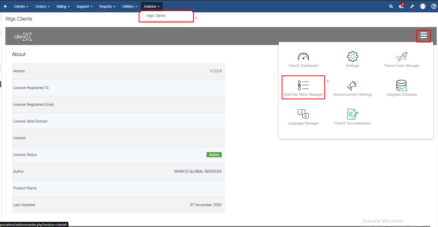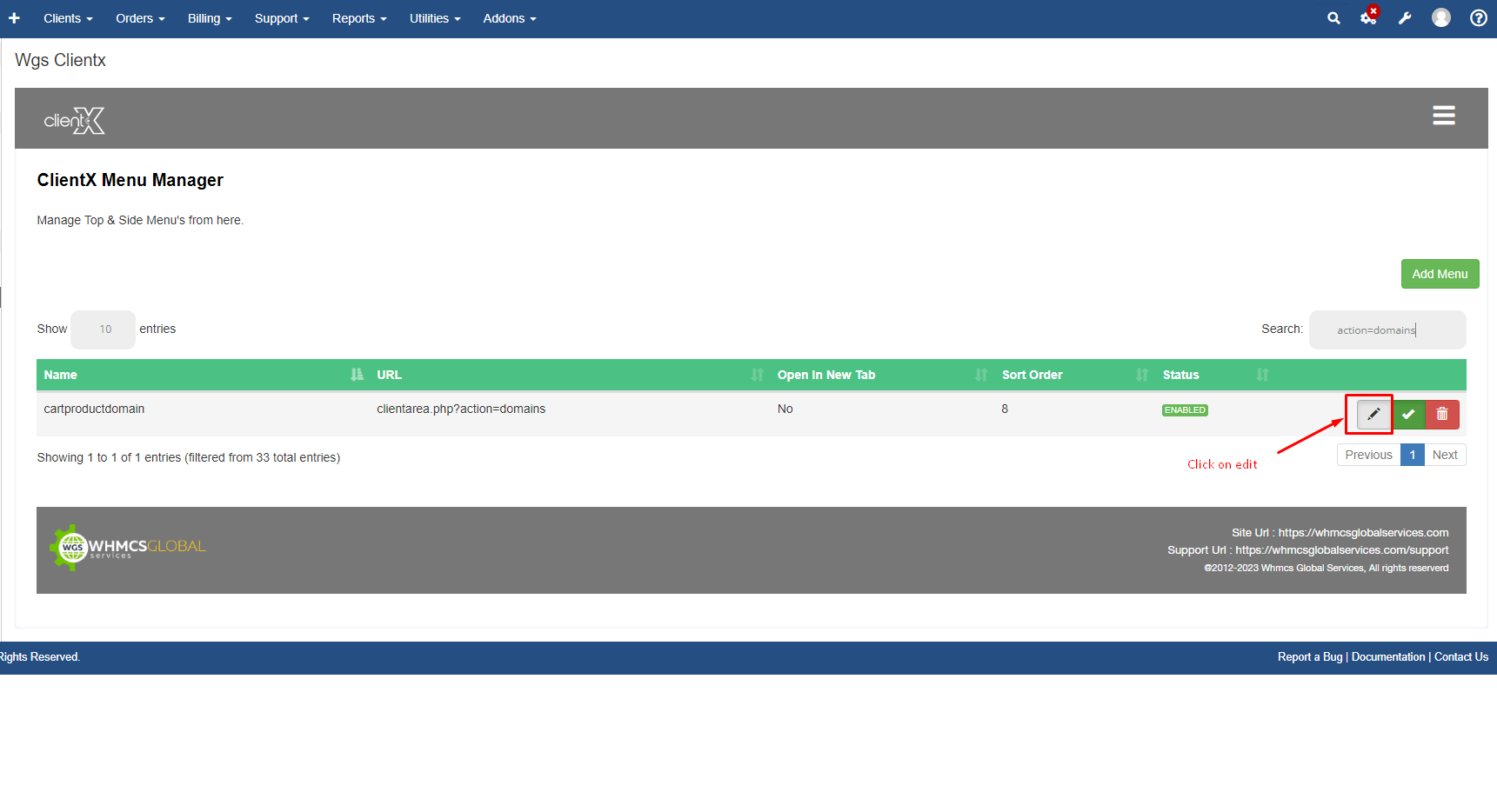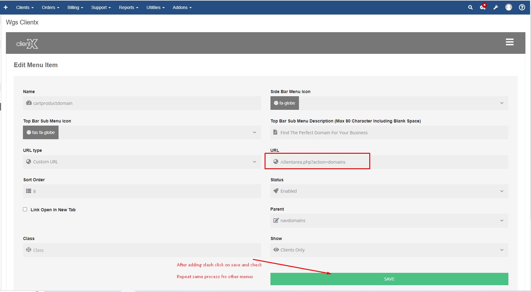 Step 2: Go to Addons > WGS ClientX > Side/Top Menu Manager