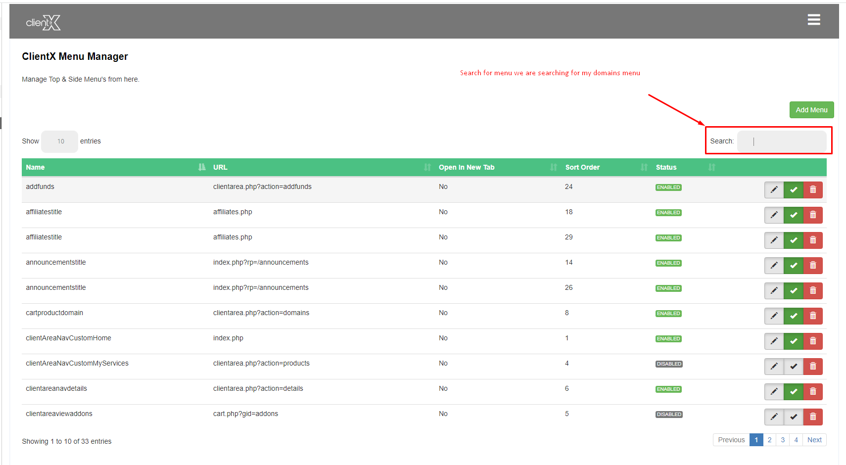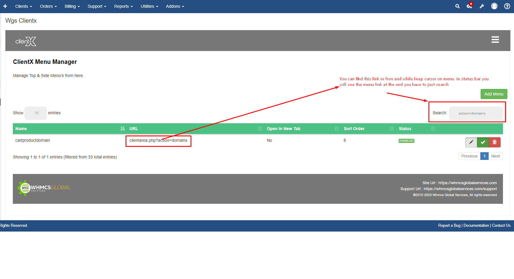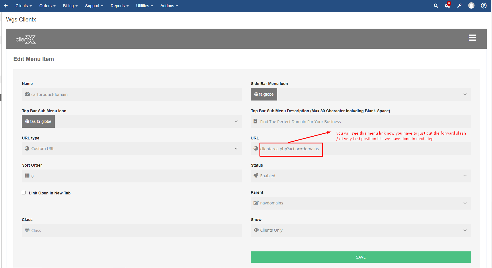 Step 2: Go to Addons > WGS ClientX > Side/Top Menu Manager