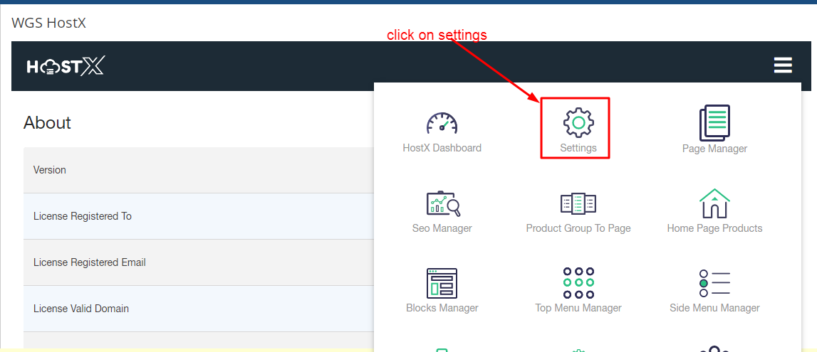 Step 1: Log in to WHMCS Admin and click on WGS Hostx addon