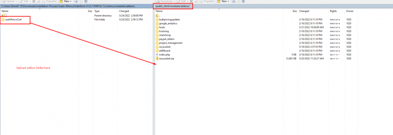 Step 5: Replace the addon "vueWhmcsCart" folder with WHMCS (whmcs_root/modules/addons/)